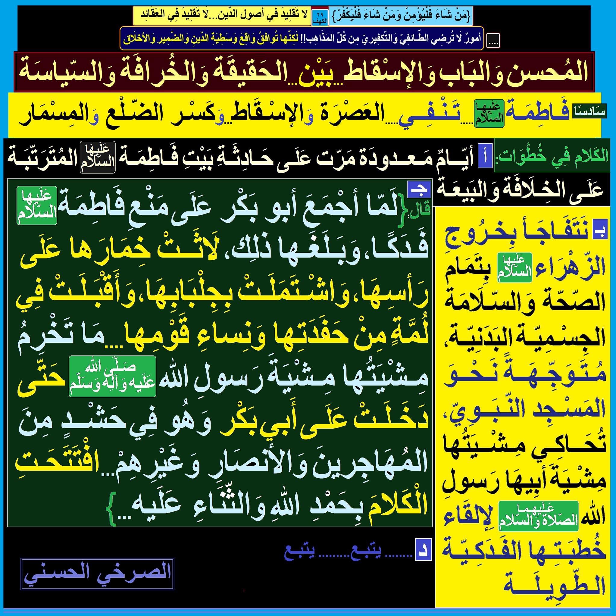 سَادسًا ـ فَاطِمَة(عَلَيْها السّلام).....تَنْفِـي.....العَصْرَة وَالإسْقَاط...وَكَسْر الضّلْع وَالمِسْمَار ...))
